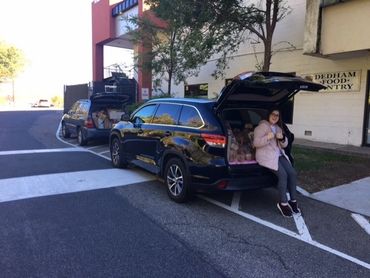 The day started off a bit chilly and we had to call in reinforcements to transport all of the collections. The shoppers in Dedham did not disappoint. Our founder Isabella is shown here at drop off right after the event with Mr Bob Samonte who helps run the pantry. Dedham Food Pantry is open every Saturday. We were told that we supplied enough sta